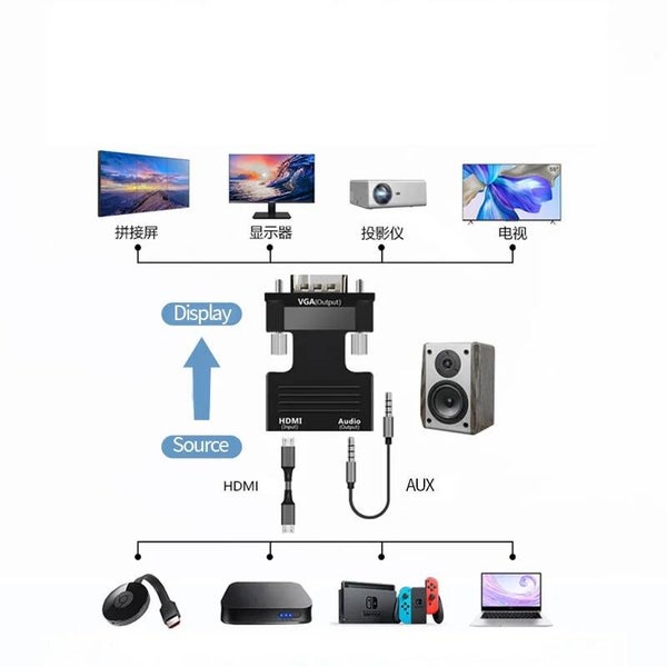 Deze HDMI naar VGA converter kunt u gebruiken om een HDMI kabel vanaf uw PC of notebook te verbinden met een VGA kabel vanaf uw monitor, TV of projector. Door een jack kabel van uw computer naar de omvormer te leiden kunt u ook het audiosignaal overdragen via deze adapter.