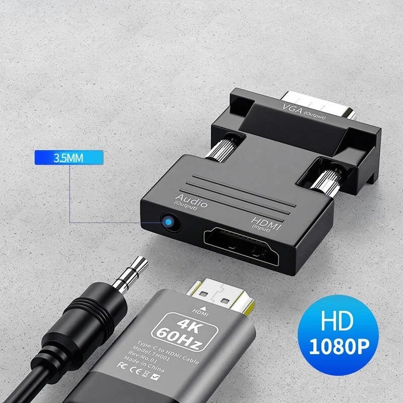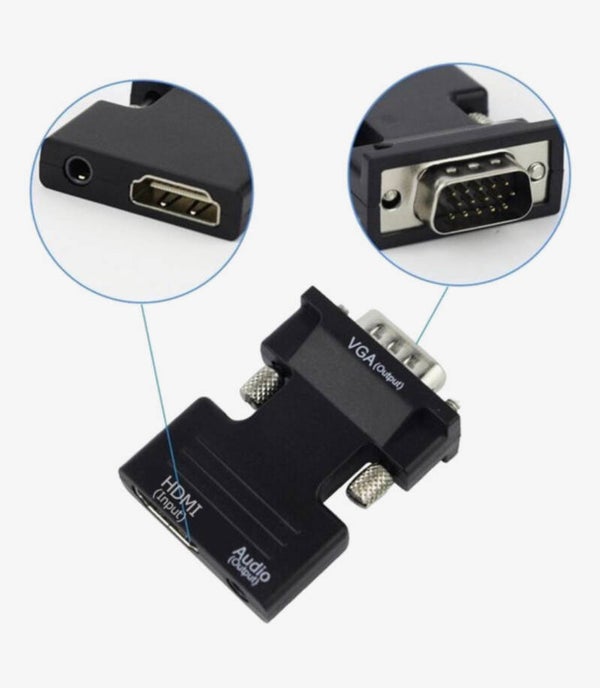 HDMI vrouwelijk naar VGA mannelijk Converter Adapter + 3.5 Audio Jack Adapter - Zwart
