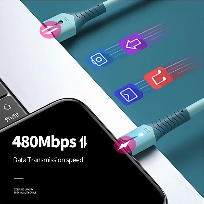 Een roburste USB snellaad kabel gemaakt van vloeibare siliconen. Beide stekkers zijn voorzien van een lange kabelbeschermer. Hierdoor is er een kleinere kans dat de kabel beschadigd raakt wanneer deze strak en met een hoek verbonden is met je telefoon en laadblok.