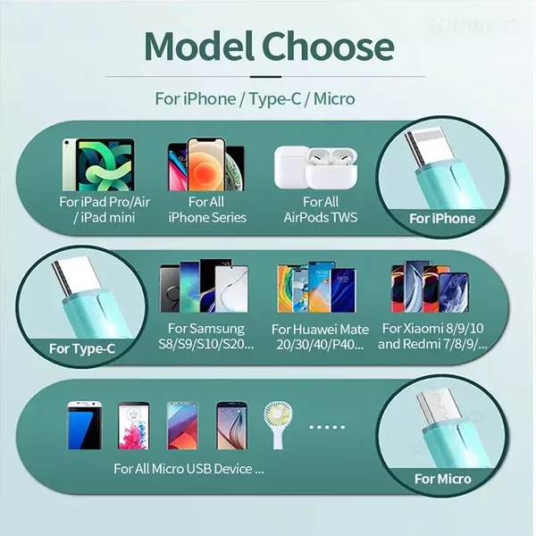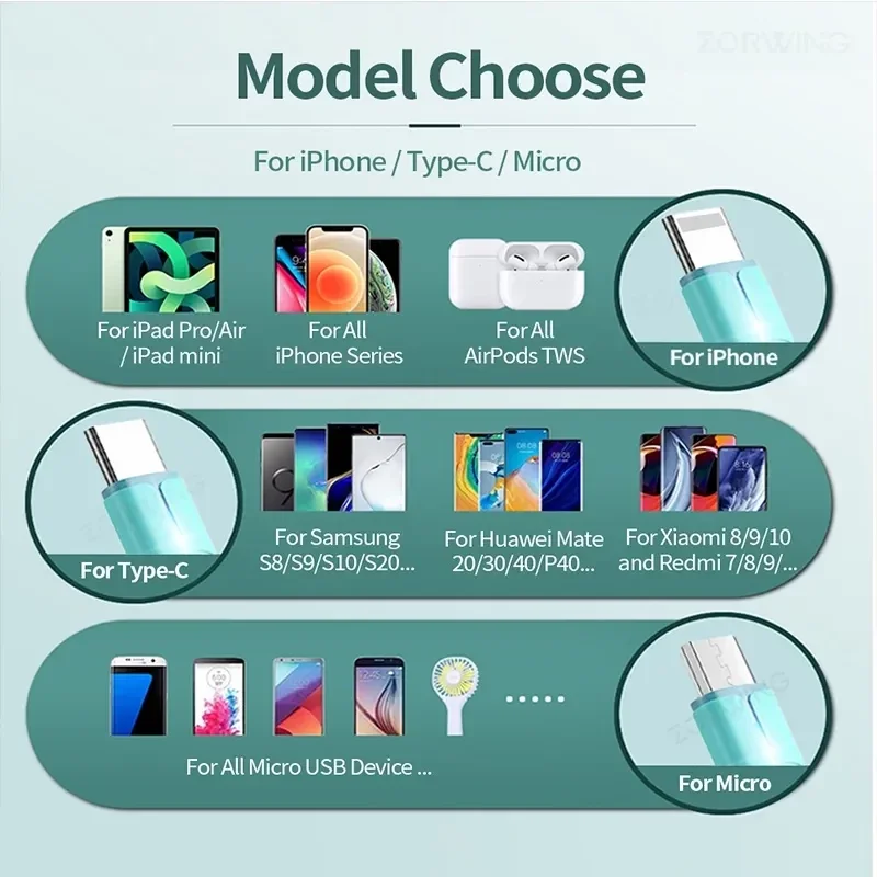 De kabel is te gebruiken met vrijwel elke Android-telefoon met een USB-C-aansluiting en elke Apple met een Lightning-aansluiting.