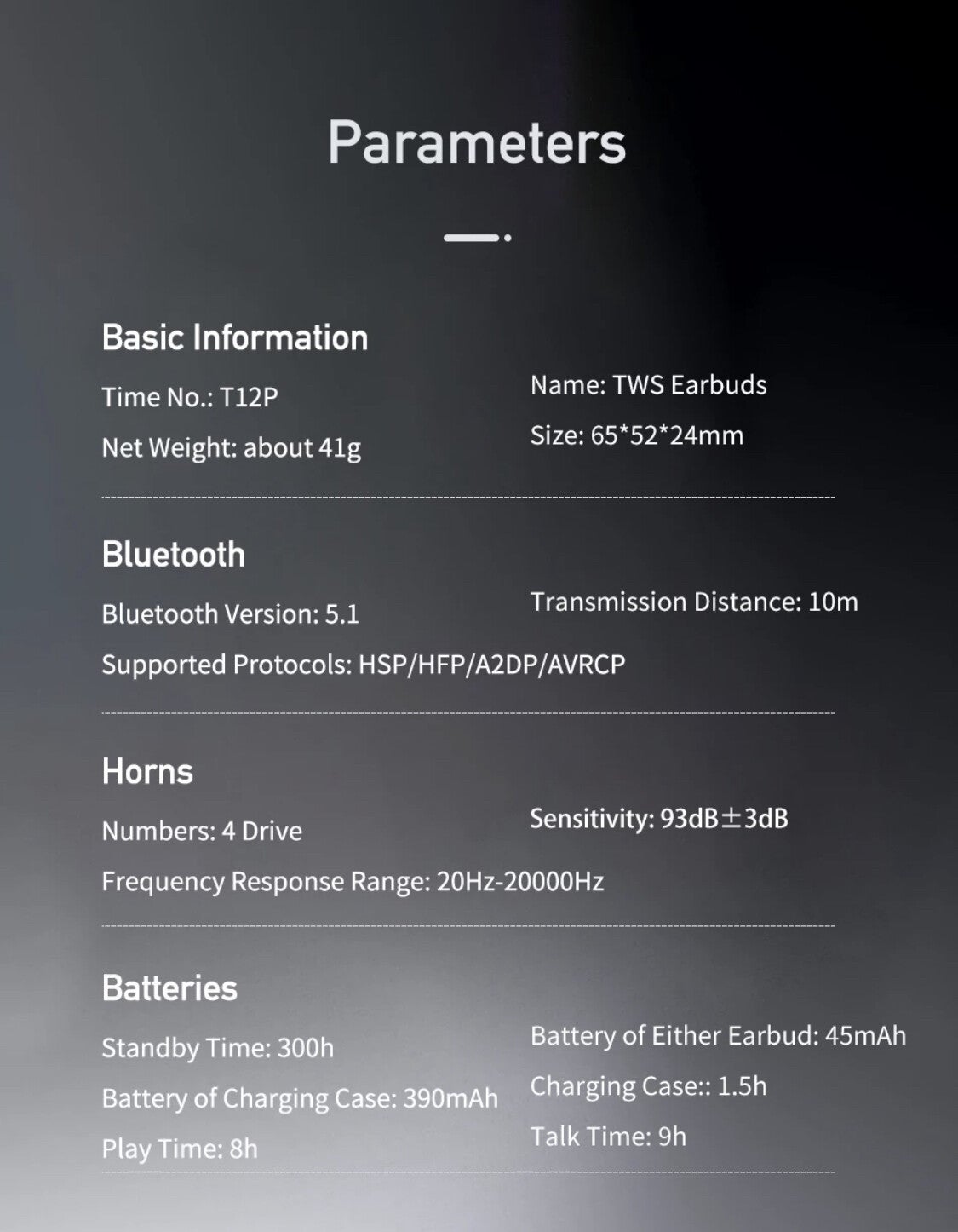 - Batterij Capaciteit van Enkele Oordopjes: 45mAh