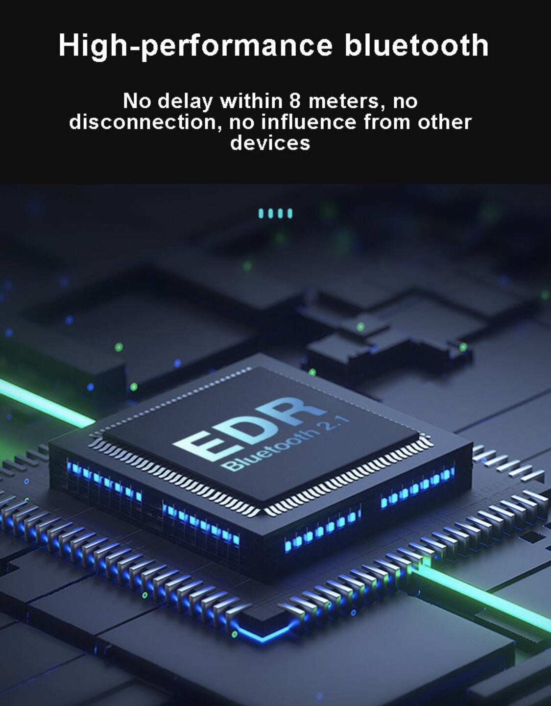 Draadloze verbinding technologie als "BT2.1 + EDR". Geen vertraging respons, sterke anti-interferentie met
