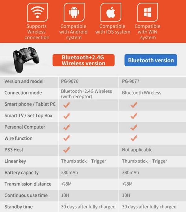 5. het product met 2.4 ontvanger, kan spelen games door draadloze verbinding met PC/P3/. * Dit product kan niet compatiblewith sommige moble telefoons wijten todiferent besturingssystemen (bijvoorbeeld, moble telefoons met MTK platform).